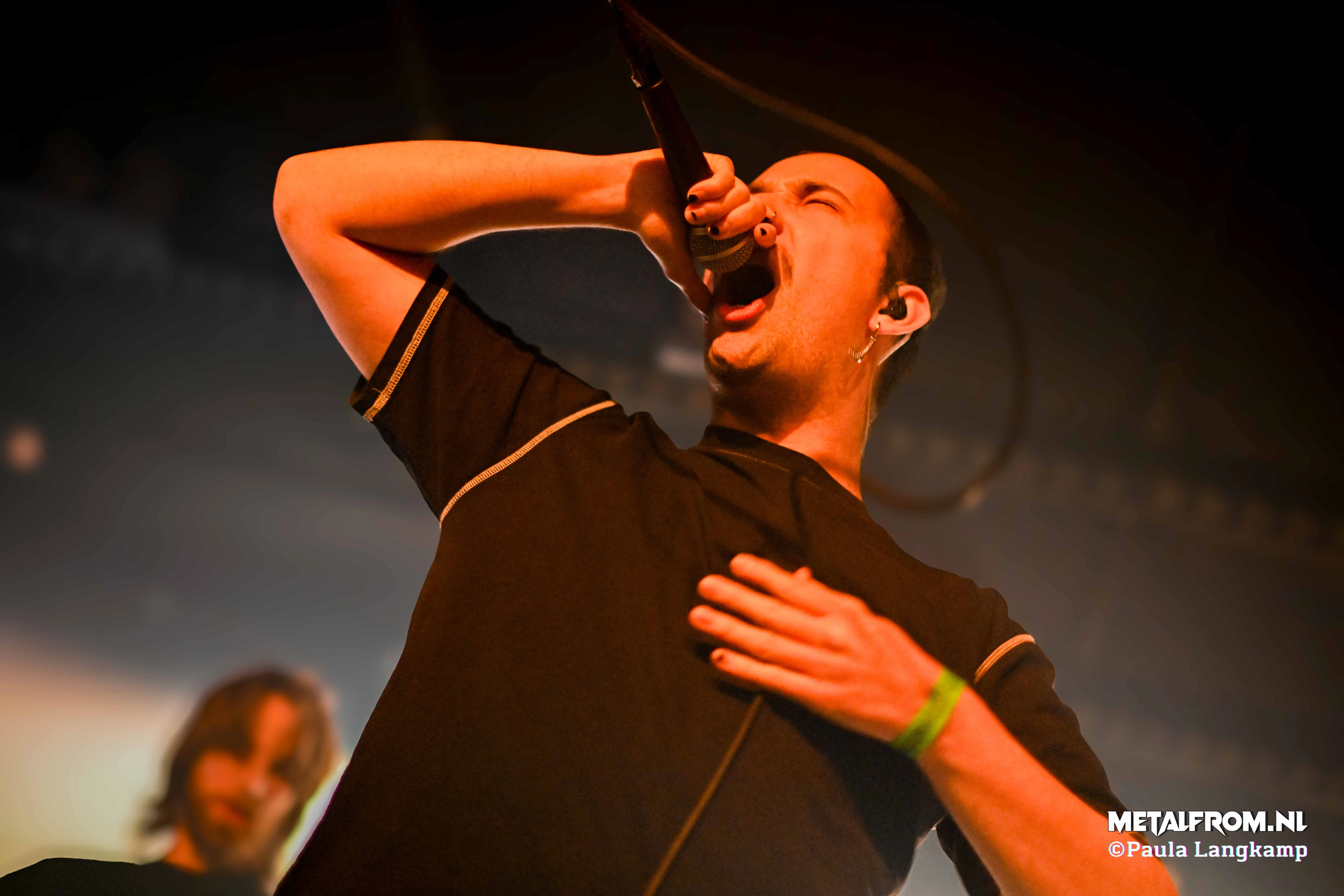 Dit geeft de mannen van Vidarr iets meer de tijd om om te bouwen. Een live review schrijven over Vidarr is voor mij als onderdeel van Vidarr natuurlijk niet te doen. Wel biedt het mij de kans om ook andere bands te live reviewen, onder het mom van ‘als we er toch zijn’. Wat foto’s betreft is er tijdens de show weinig frontlicht en veel haze. Ik probeer op de juiste momenten nog wat goede foto’s te maken. De foto’s van silhouetten hebben gelukkig wel iets, en als ik zo mijn shots bekijk zit er wel wat leuks tussen. Voor het einde van de show begeef ik mij richting de merchandise. Als mensen wat willen kopen is dit eigenlijk veelal na de show, dus aan de bak.